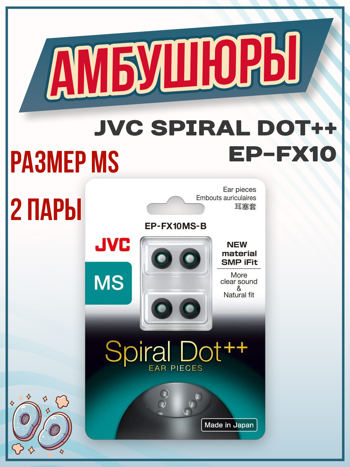 - Амбушюры JVC Spiral Dot ++ EP-FX10 (2 пары ML)