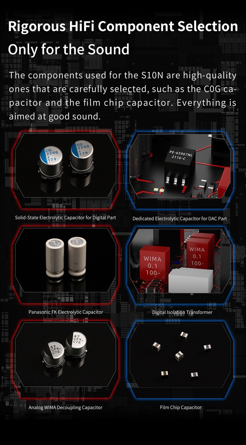 В основе S10N лежит точно разработанная многоядерная архитектура, которая обещает лучшую в отрасли производительность звука. Она включает в себя отдельное ядро потоковой передачи, отдельное ядро генерации сигнала FPGA, независимое ядро Bluetooth, независимое ядро PLL Clock и независимое базовое ядро NXP. На разные ядра возлагаются разные задачи, что помогает достичь качественной производительности в долгосрочной перспективе.