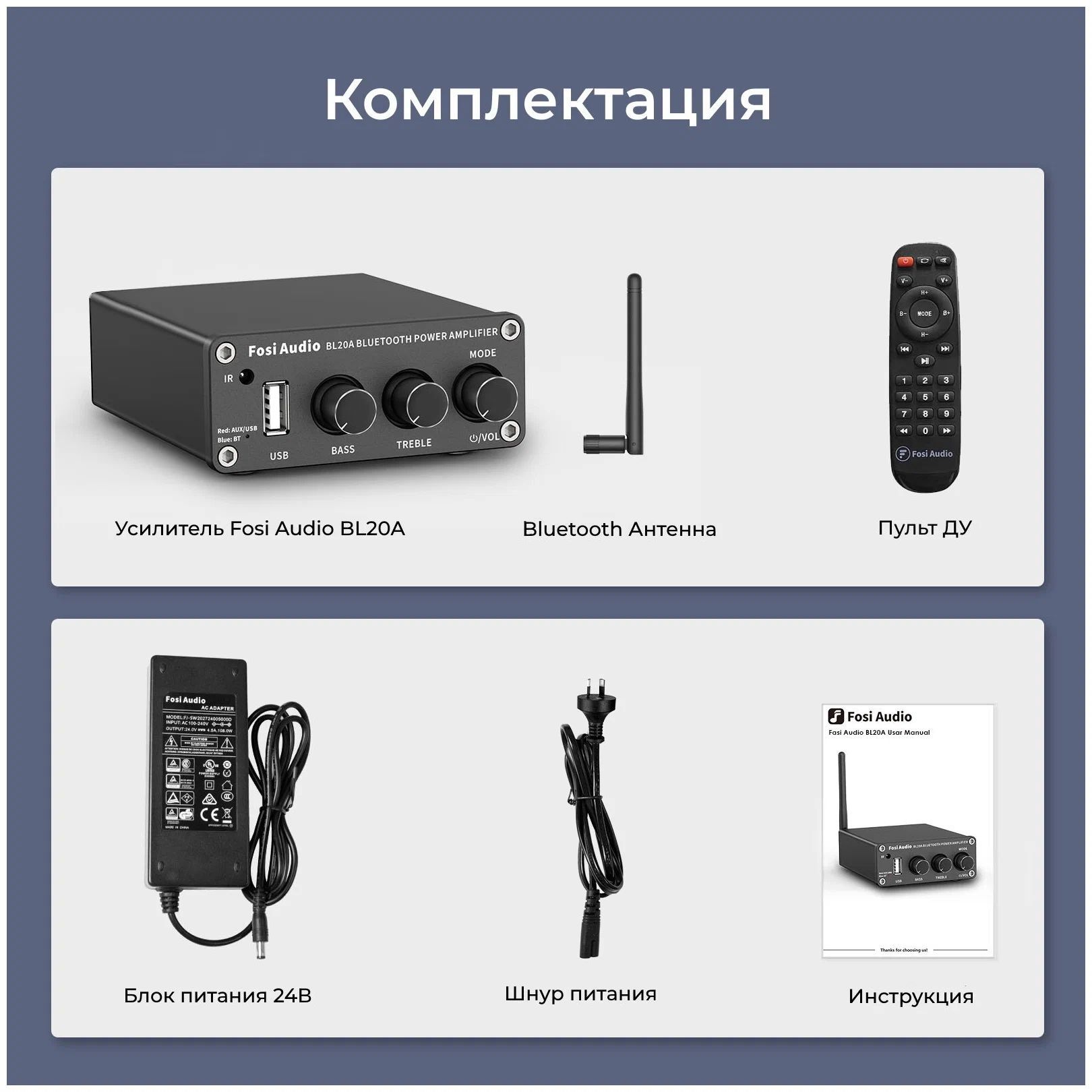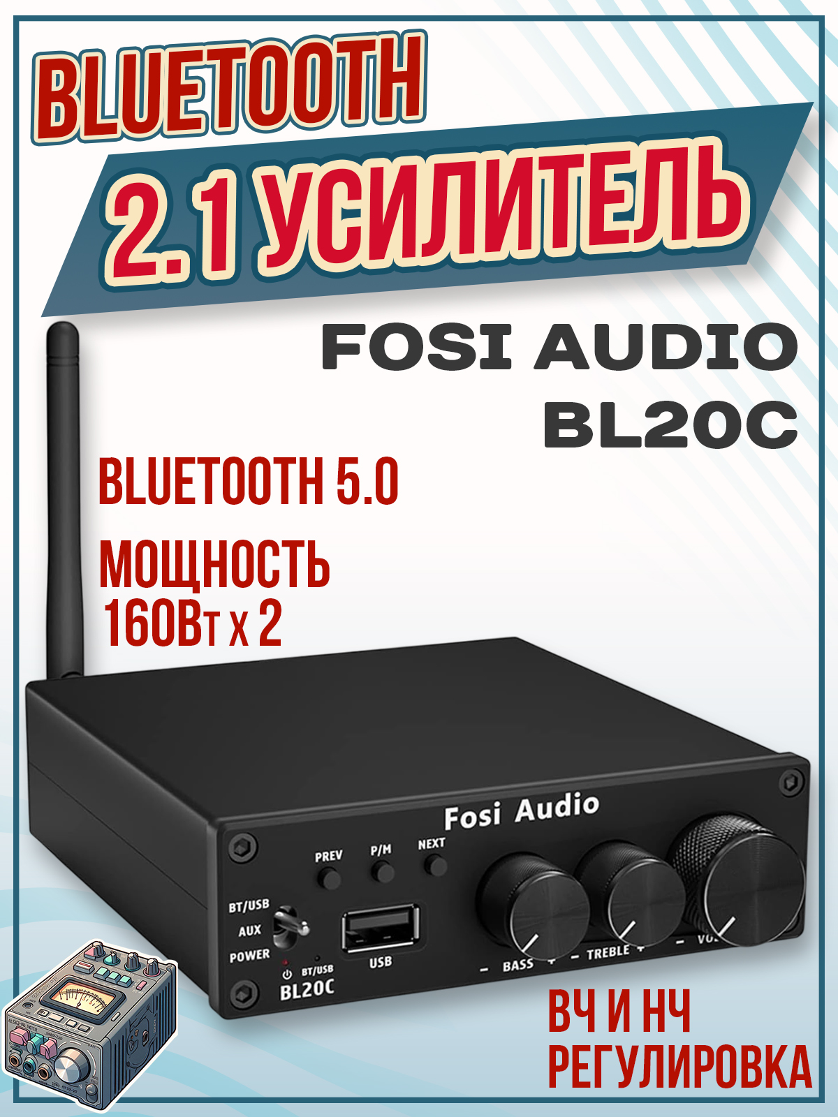 - Fosi Audio BL20C Bluetooth HiFi 2.1 усилитель 160W x 2 + USB