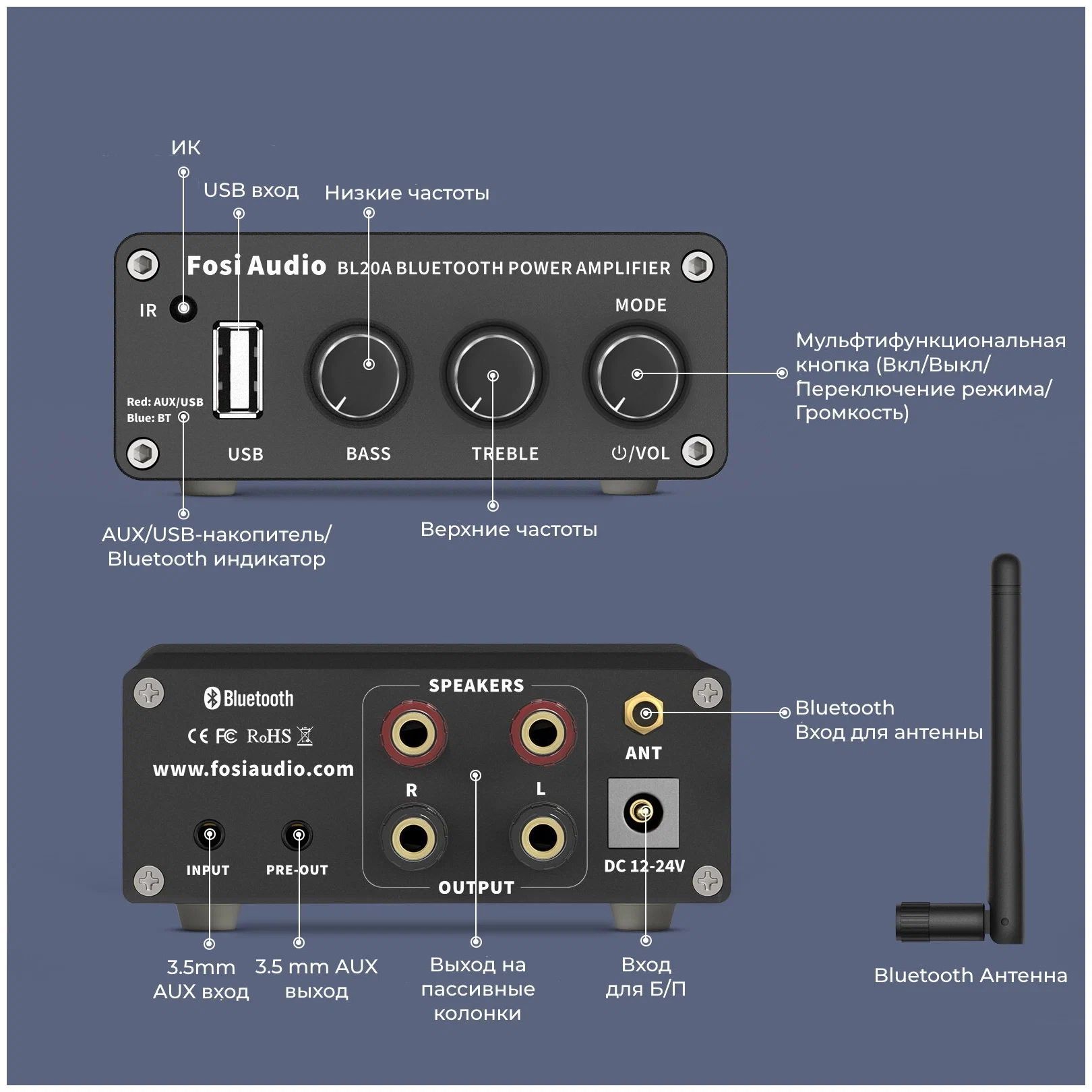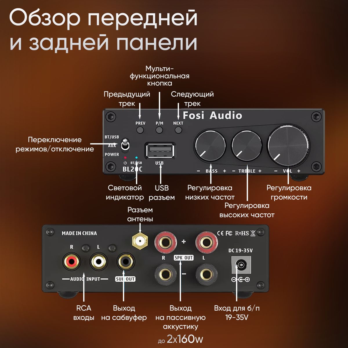 Fosi Audio BL20C - это небольшой, эффективный и доступный усилитель класса D на базе микросхемы TDA7498E, позволяющий развивать мощность 2x150 Вт под нагрузкой 4Ω.