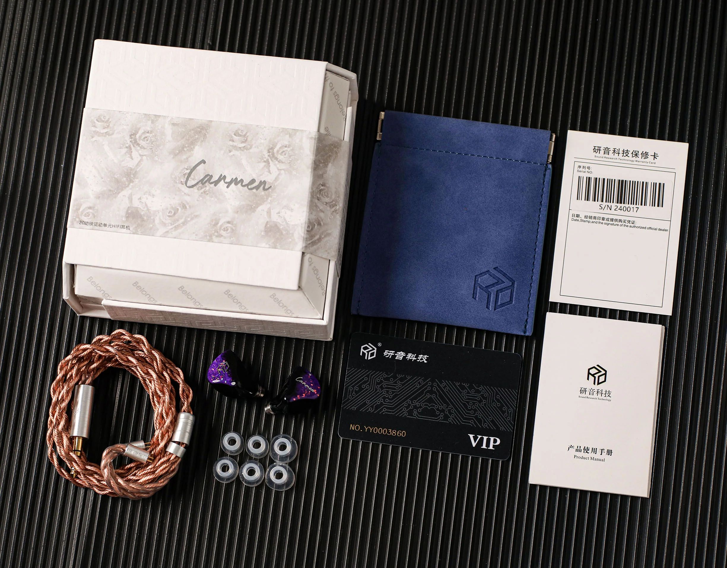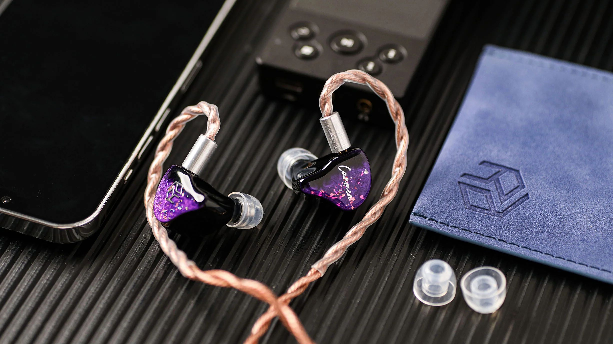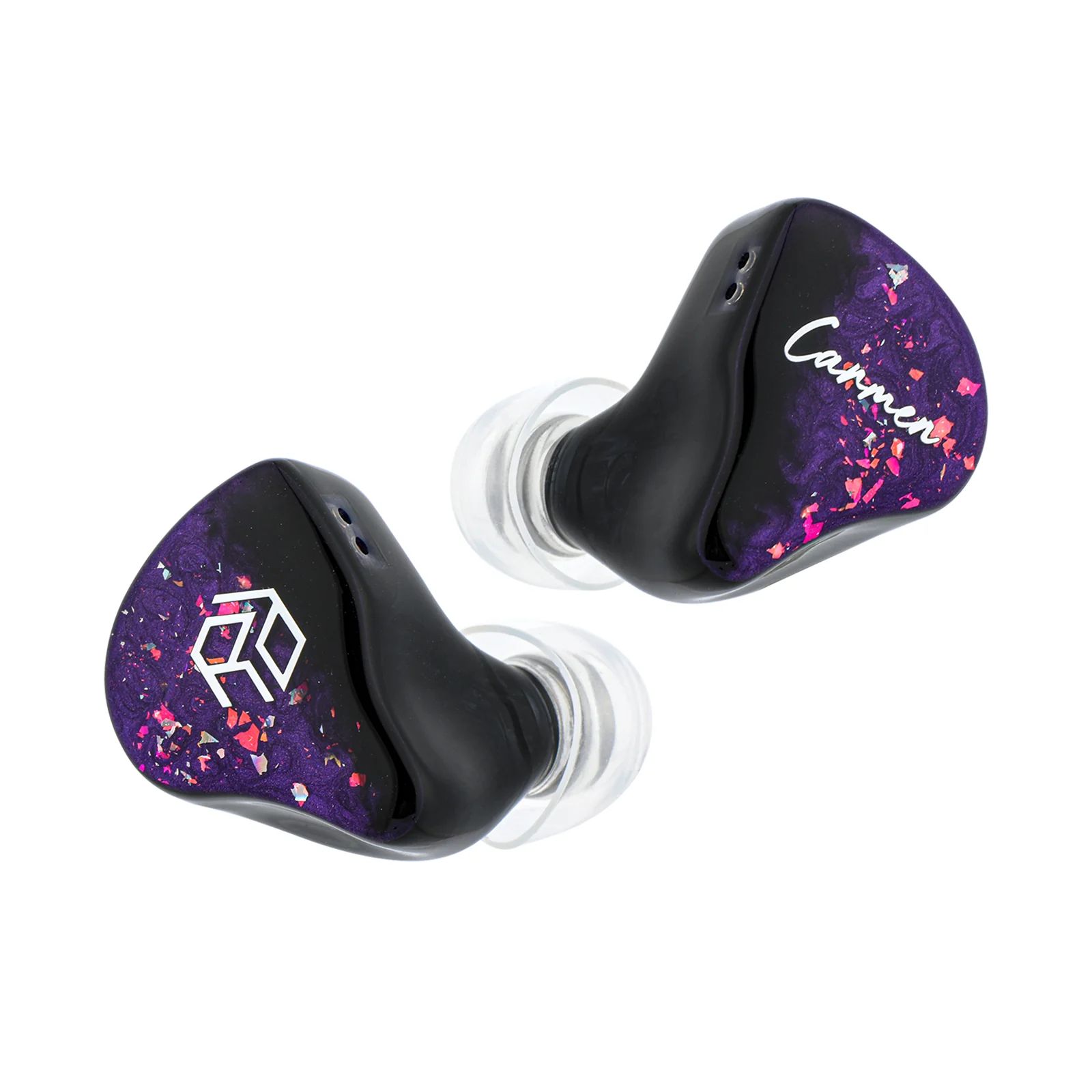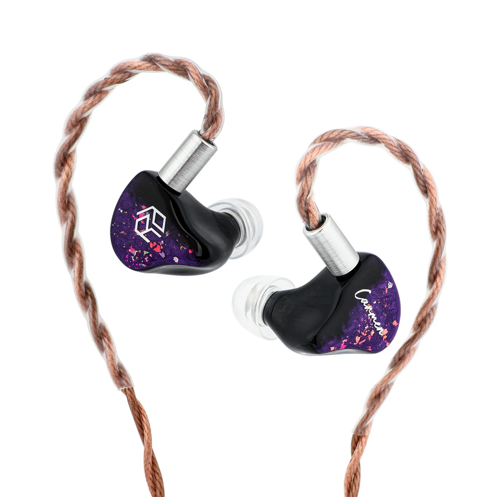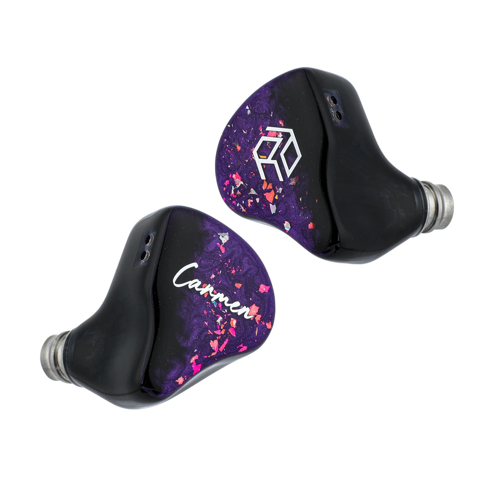 "Carmen" оснащены технологией компенсации фазовой синхронизации, что является редким и сложным достижением в многодрайверных конфигурациях. Благодаря нашему обширному опыту исследований мы добились исключительно низких искажений и сбалансированного частотного отклика, что обеспечивает чёткое разделение и бесшовную интеграцию частот по всему спектру. Это приводит к высокоточной звуковой передаче. Дизайн включает фиолетовые и звёздные элементы, создавая сильное визуальное впечатление и загадочную, романтичную атмосферу, напоминающую страстный испанский колорит оперы "Кармен".