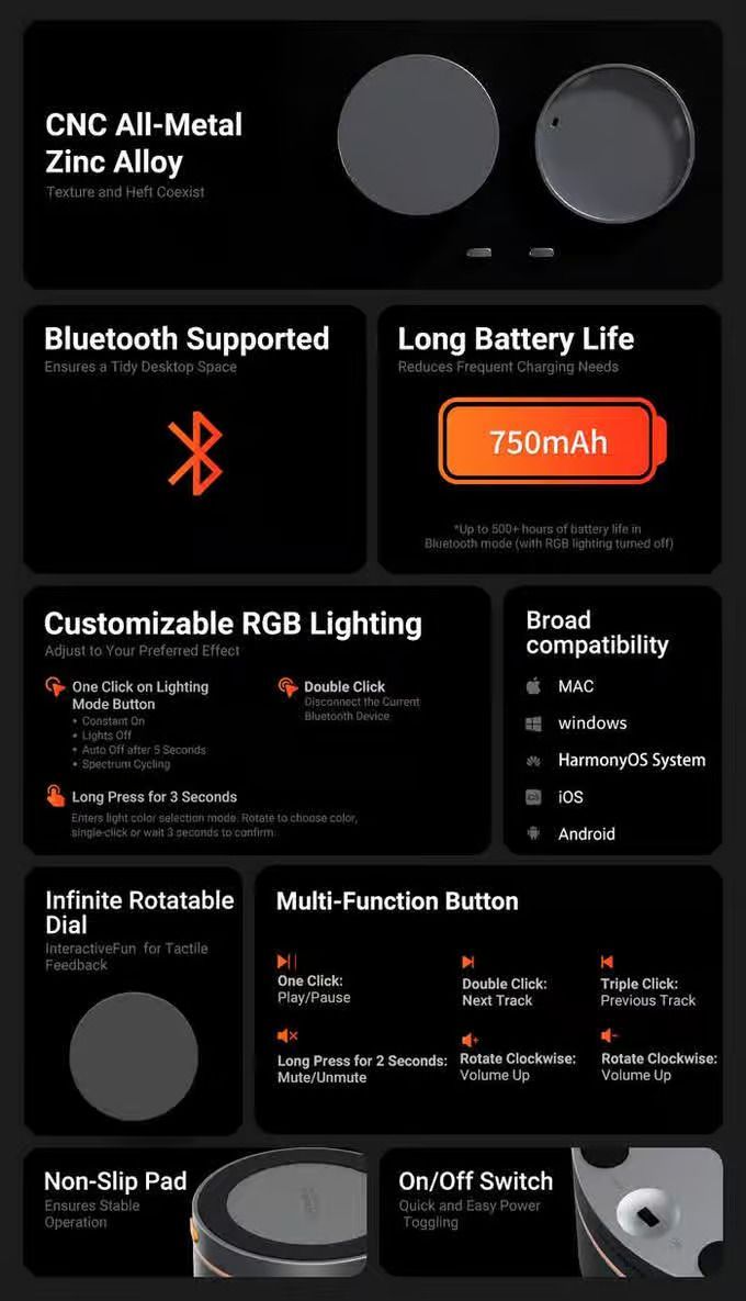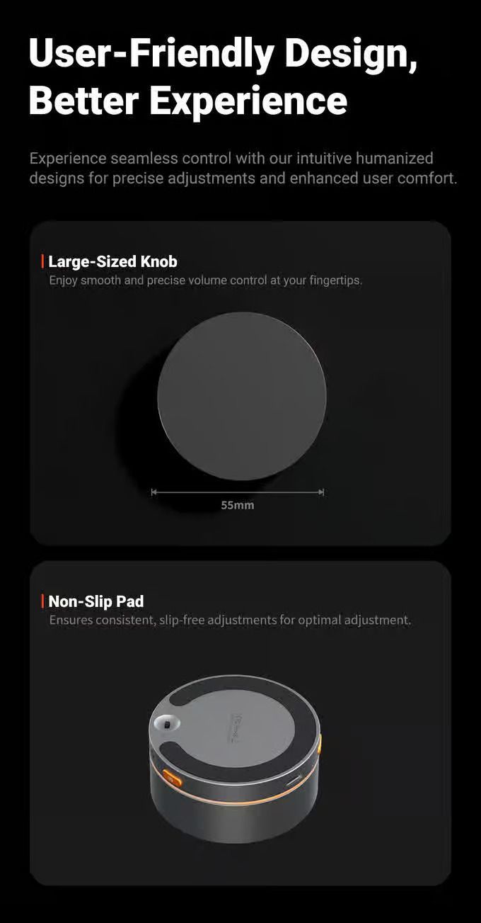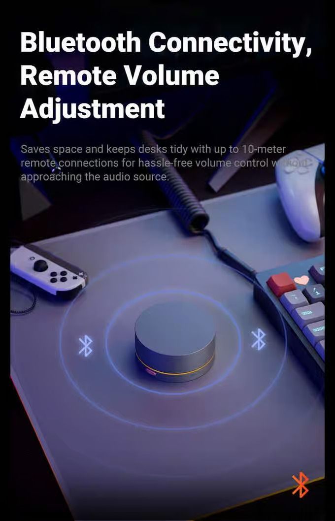 Беспроводная ручка регулировки громкости Bluetooth VOL20 здесь, чтобы упростить вашу настройку. Ее элегантный дизайн не только наводит порядок на вашем рабочем месте, но и позволяет вам легко регулировать громкость, не имея дела со спутанными кабелями. Наслаждайтесь более чистым, более организованным столом и бесшовным музыкальным опытом с VOL20, делая каждую настройку гладкой и легкой.