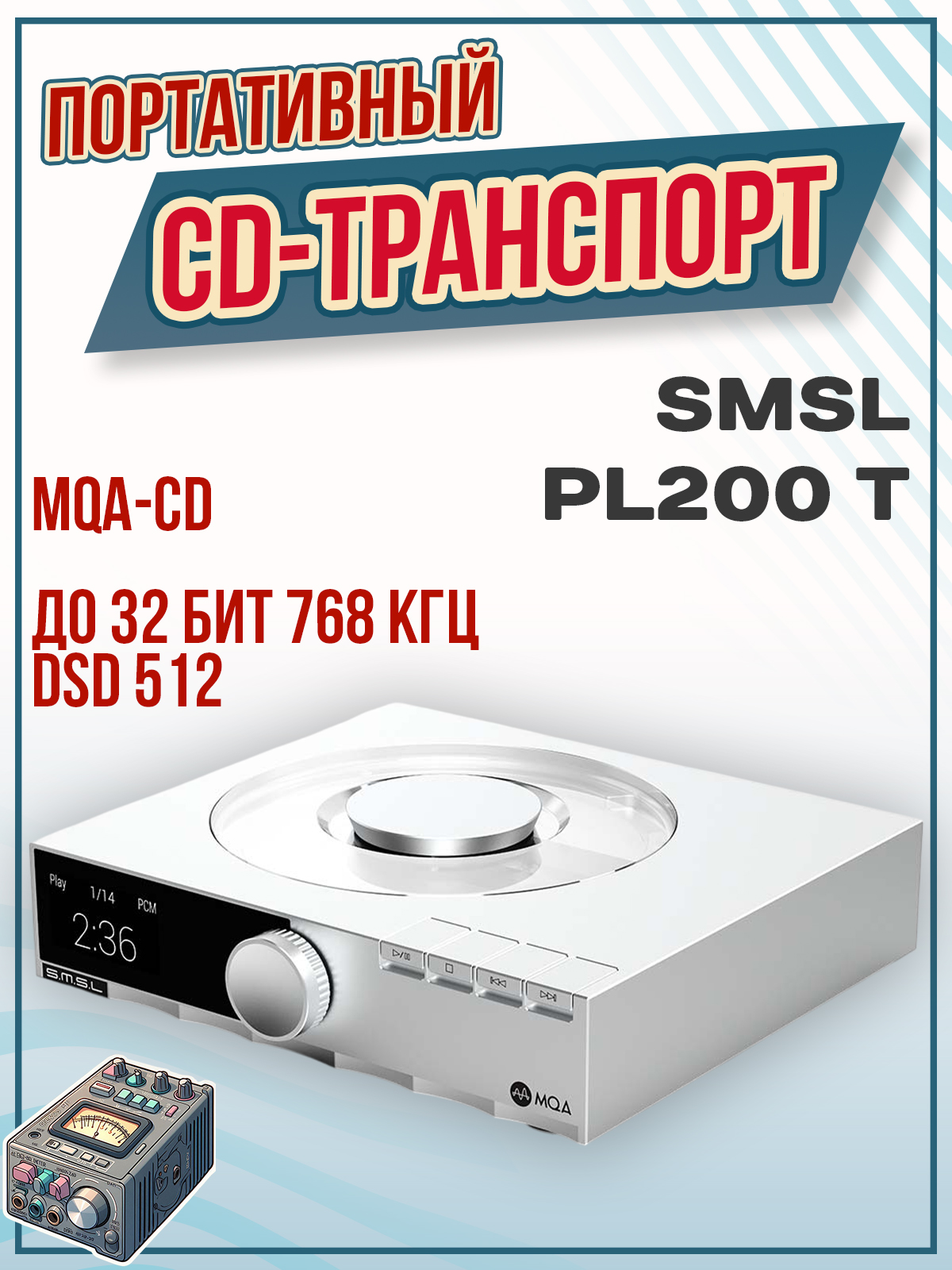 - Настольный CD-транспорт SMSL PL200T, CD-проигрыватель, MQA, серебристый