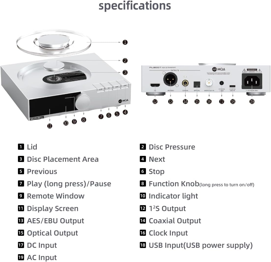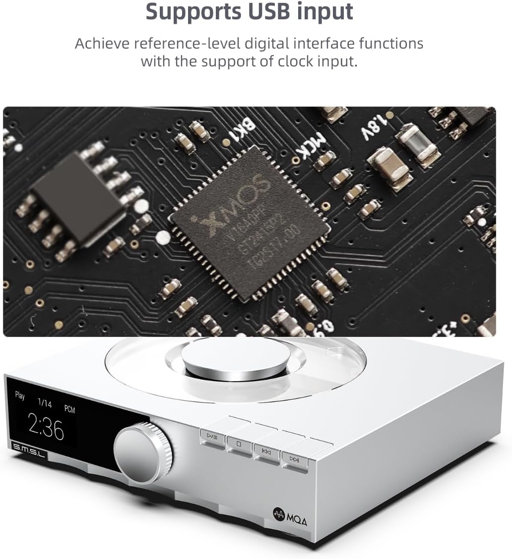 Базирующийся на фирменной системе SMSL PASS Servo, транспорт PL200T обеспечивает стабильное и точное считывание информации с компакт-дисков. При этом, новинка способна воспроизводить диски MQA-CD. Новинку также можно использовать в качестве цифрового интерфейса с входом USB-C, поддерживающим цифровые потоки в формате PCM с разрешением вплоть до 32 бит/768 кГц и в формате DSD до DSD512.