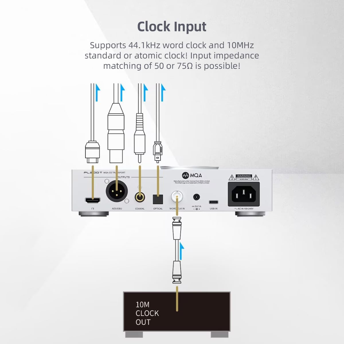 Ещё одной особенностью транспорта SMSL PL200T является возможность подключения к нему внешнего тактового генератора. Компонент может работать как на вход, так и на выход, и поддерживает тактовую частоту 44,1 кГц и стандартную тактовую частоту 10 МГц.