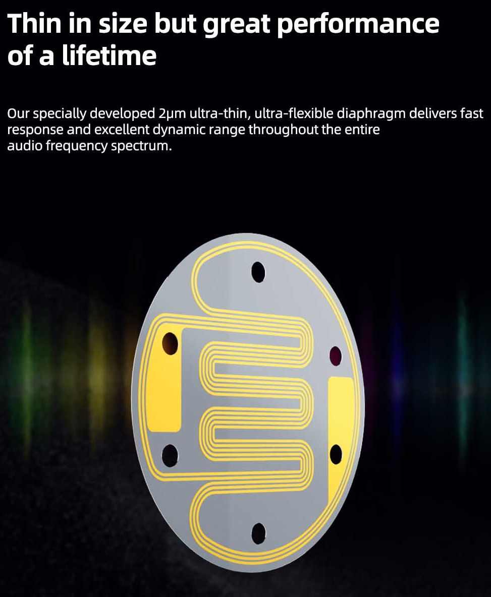 Ультратонкий диафрагменный планарный магнитный излучатель диаметром 14,2 мм.