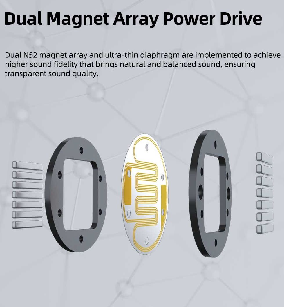 В 7Hz Timeless AE используется тот же 14,2-мм ультратонкий диафрагменный планарный магнитный драйвер, что и в OG Timeless. Он оснащен специально разработанной 2-дюймовой ультратонкой, ультрагибкой диафрагмой, которая обеспечивает быстрые переходные характеристики и превосходный динамический диапазон. Драйвер также имеет двухстороннюю мощную магнитную архитектуру N52.