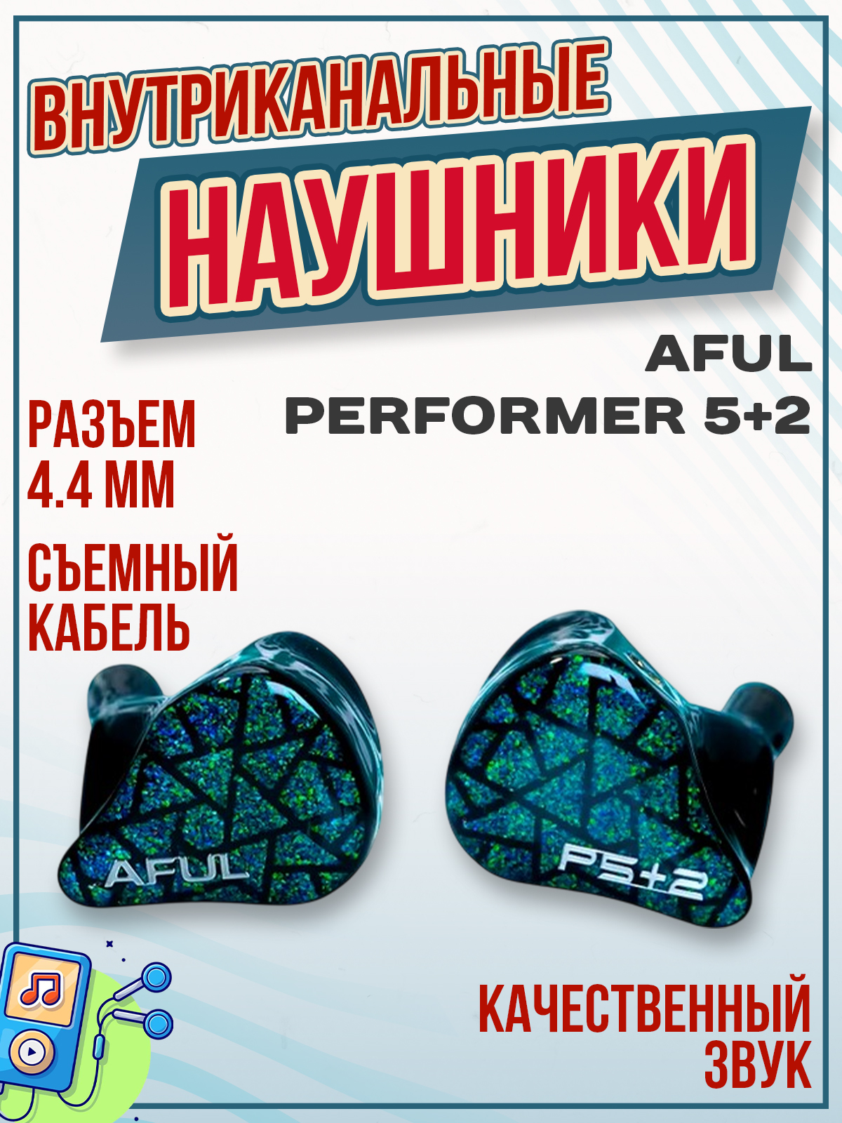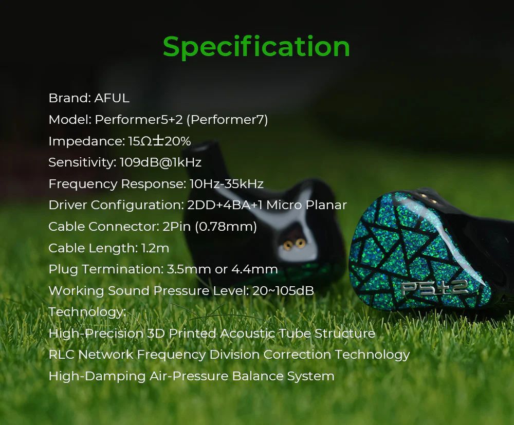 Наушники AFUL Performer 5+2 — это гибридная модель, которая сочетает два динамических драйвера, четыре арматурных и один микропланарный драйвер для достижения широкого частотного диапазона и детализированного звучания.