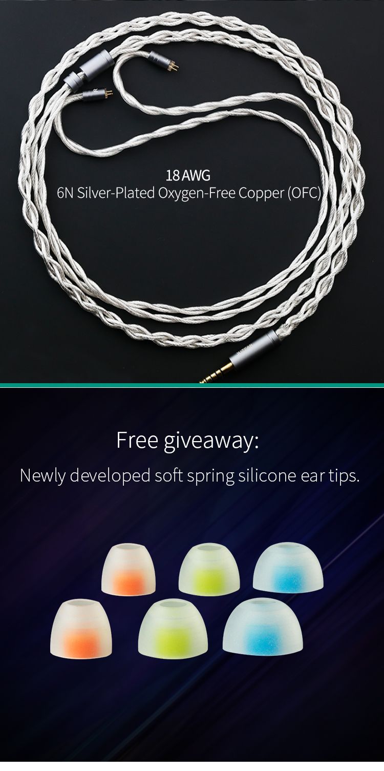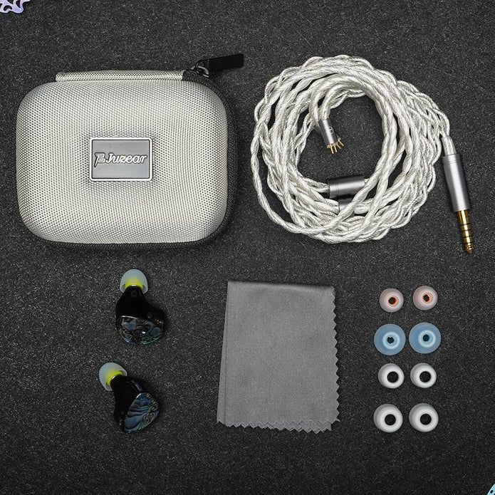 Juzear включает в комплект высококачественные аксессуары для новых Butterfly 61T, включая высокочистый кабель из бескислородной меди с серебряным покрытием 18AWG 6N. Кабель имеет стандартные 0,78 мм 2-pin разъемы и доступен с различными вариантами штекеров: 2,5 мм, 3,5 мм или 4,4 мм. В комплект также входят высококачественные силиконовые насадки.
