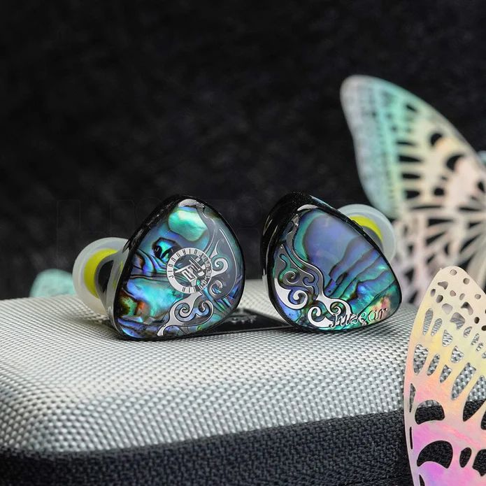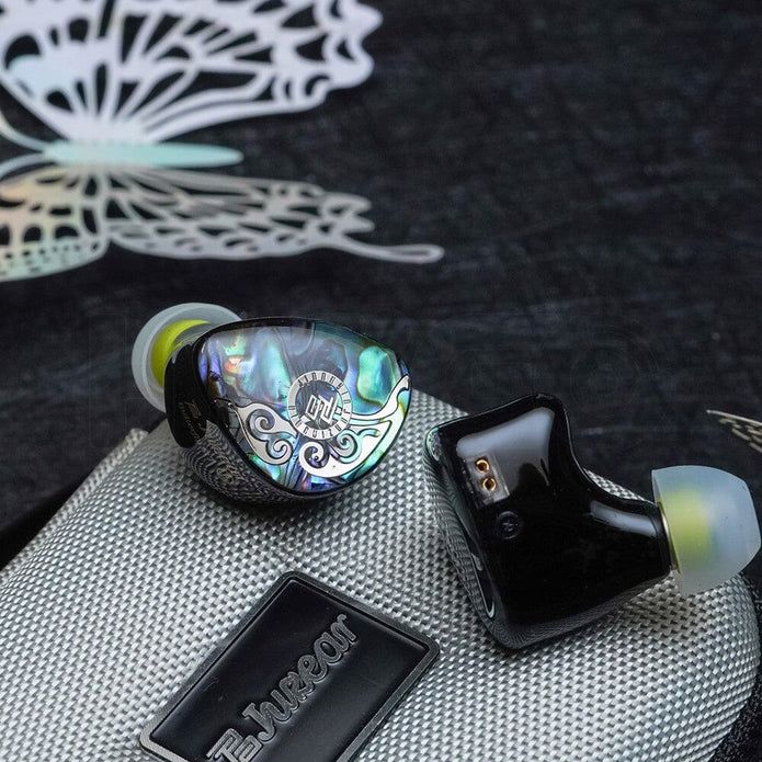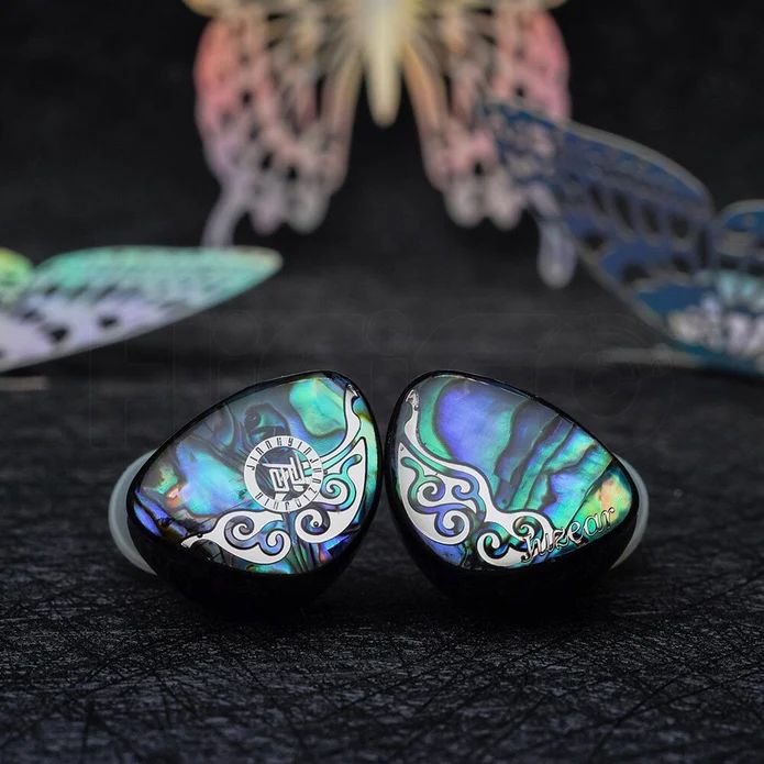 Наушники изготовлены из смолы с высокой точностью 3D-печати и лицевыми панелями из перламутровой раковины, обработанными на станках с ЧПУ. Пластины выглядят изысканно и имеют премиальный вид. Обе стороны наушников также украшены крыльями бабочки на лицевых панелях.