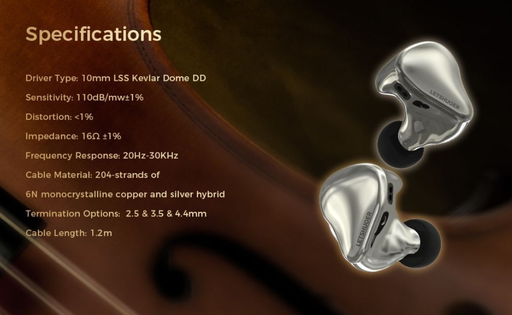 Компания LETSHUOER использовала в Cadenza 12 мощную конфигурацию динамиков. В ней используется традиционная комбинация драйверов DD+BA с комбинацией из 12 драйверов на каждой стороне. Они использовали 10-мм динамический драйвер с силиконовым подвесом в паре с 11 высокопроизводительными драйверами Knowles и Sonion со сбалансированным якорем.