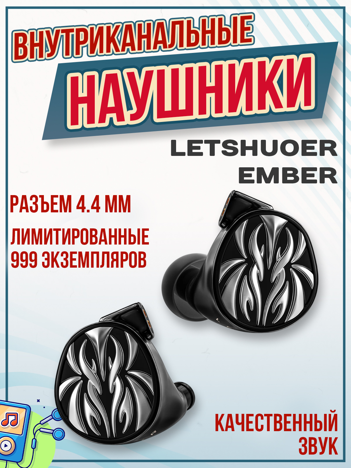 LETSHUOER Ember — лимитированные (всего 999 экземпляров по всему миру) флагманские внутриканальные мониторы (IEM) с планарно-магнитным драйвером от бренда LETSHUOER. Это преемник популярных моделей S12/S15, но с полностью новым 14,8-мм планарным драйвером, улучшенной эффективностью и динамикой на ~20 % по сравнению с предыдущими флагманами. Позиционируется как зрелая, музыкальная и расслабленная планарная модель для тех, кто ищет теплоту, бас и естественность без аналитической сухости.