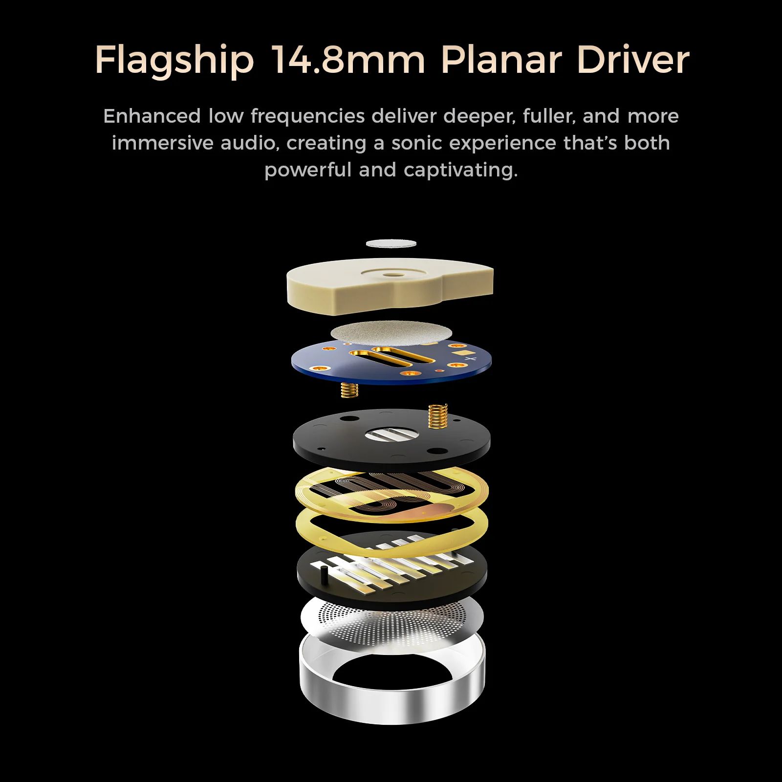 В основе — новый 14,8-мм планарно-магнитный драйвер с переработанной архитектурой для повышения эффективности, скорости отклика и стабильности. Корпус из матового титанового сплава — лёгкий, эргономичный и премиум-качества, с гравировкой в стиле пламени («Ember» — тлеющие угли). Кабель — премиум-коллаборация с Effect Audio, сменные штекеры, отличная эргономика и комфорт даже при длительном прослушивании.