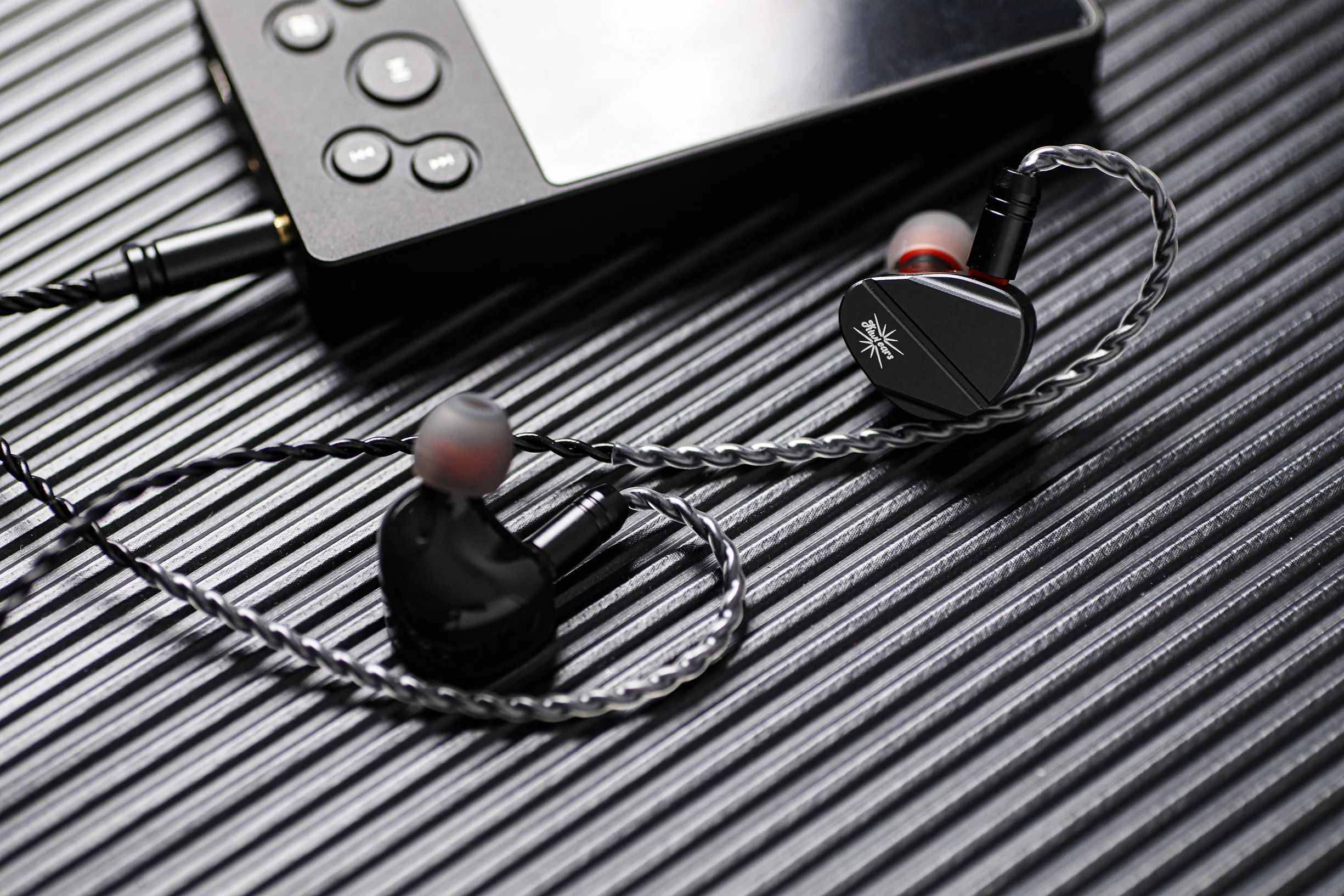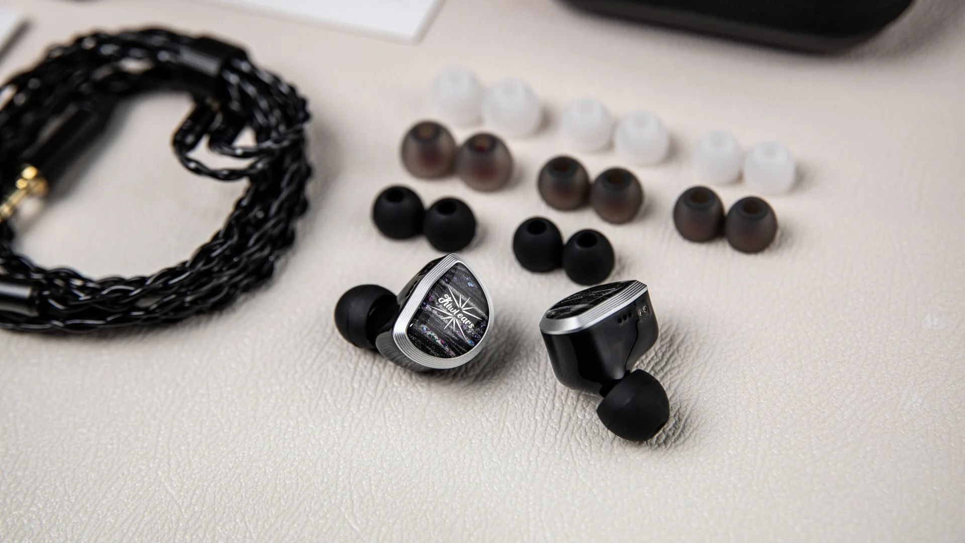 В основе звуковой системы — кастомный динамический драйвер с LCP+PU-диафрагмой. Такая конструкция минимизирует искажения и сохраняет стабильное звучание на разных уровнях громкости. В дополнение к нему используются четыре арматурных излучателя: два отвечают за высокие частоты, а два других работают в сверхвысоком диапазоне, дополняя звучание дополнительной точностью и расширением.