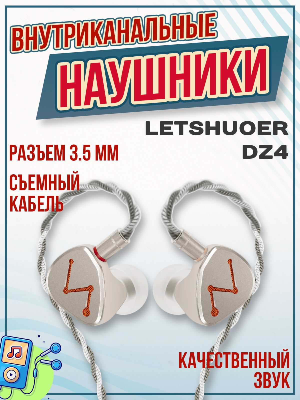 Встроенный режекторный фильтр 5 кГц - Очищает звук. Корпус из нержавеющей стали, эргономичный дизайн - Роскошная текстура, удобное ношение. 256-жильный посеребренный монокристаллический медный плетеный кабель - Передача без потерь. Двухконтактная конструкция съемного кабеля 0,78 мм - Варианты штекера 3,5 мм или 4,4 мм.