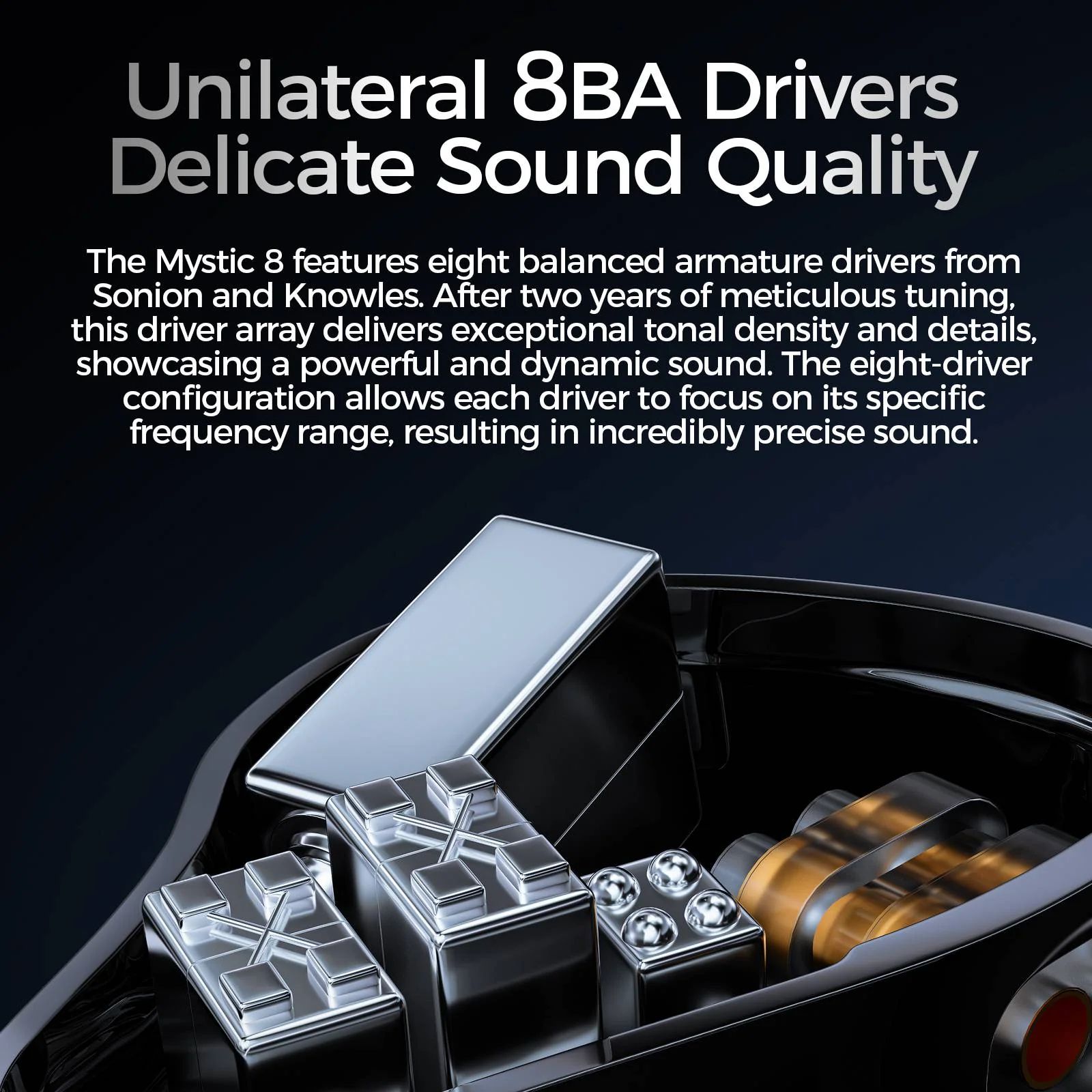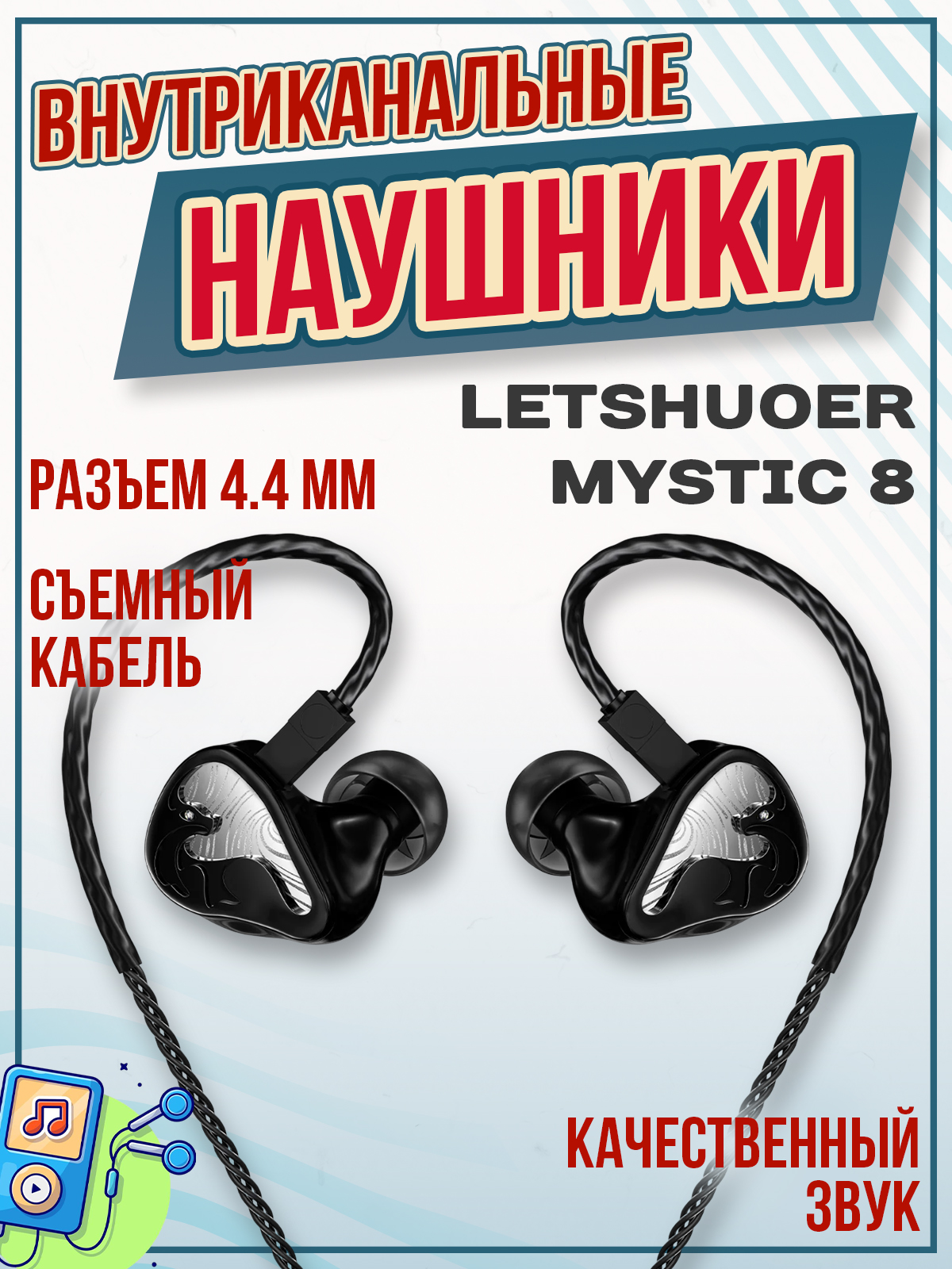 LETSHUOER Mystic 8 – новые внутриканальные наушники с восьмидрайверной арматурной конфигурацией, созданные для точного и насыщенного звучания. В модели используются излучатели Sonion и Knowles, распределенные по частотным диапазонам для передачи детального баса, выразительной середины и прозрачных высоких частот.
