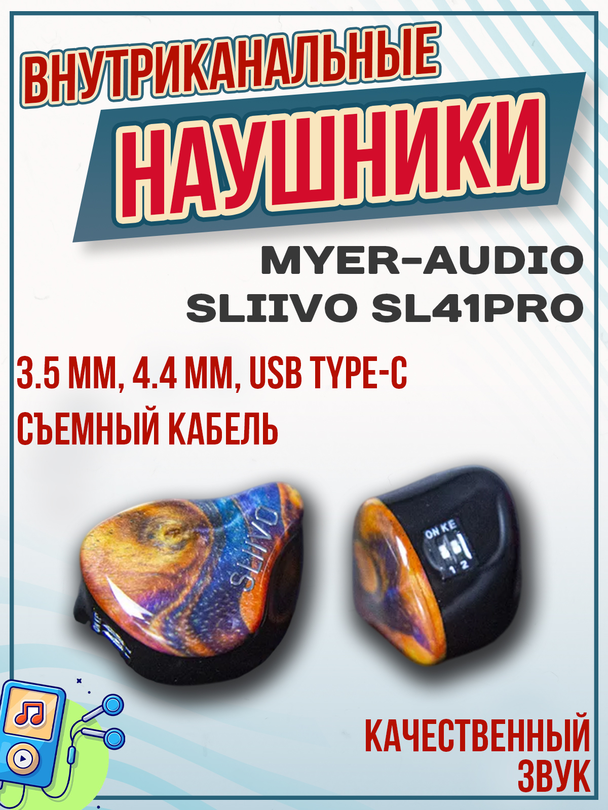 SLIIVO SL41Pro — премиальные гибридные внутриканальные мониторы от китайской компании Myer Audio (бренд SLIIVO), улучшенная "Pro"-версия популярной модели SL41 MK2 с конфигурацией 1 динамическим излучателем (10 мм) и 4 балансными арматурными (включая Knowles), плюс четырьмя переключателями настройки для гибкой подстройки звучания.