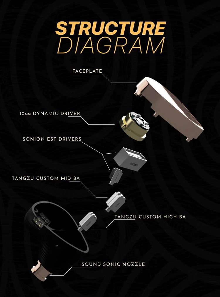 TANGZU Zetian Wu Legend – новые внутриканальные наушники, в которых используется инновационная двухдрайверная планарная технология. Главная особенность модели – сочетание 14,2 мм планарного драйвера, отвечающего за мощные и насыщенные низкие частоты, и 6 мм драйвера с плоской диафрагмой, создающего чистые и детализированные высокие частоты. Этот тандем обеспечивает широкую звуковую картину с высокой детализацией, глубиной и динамикой.