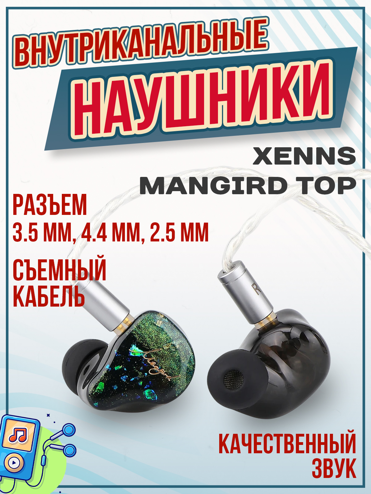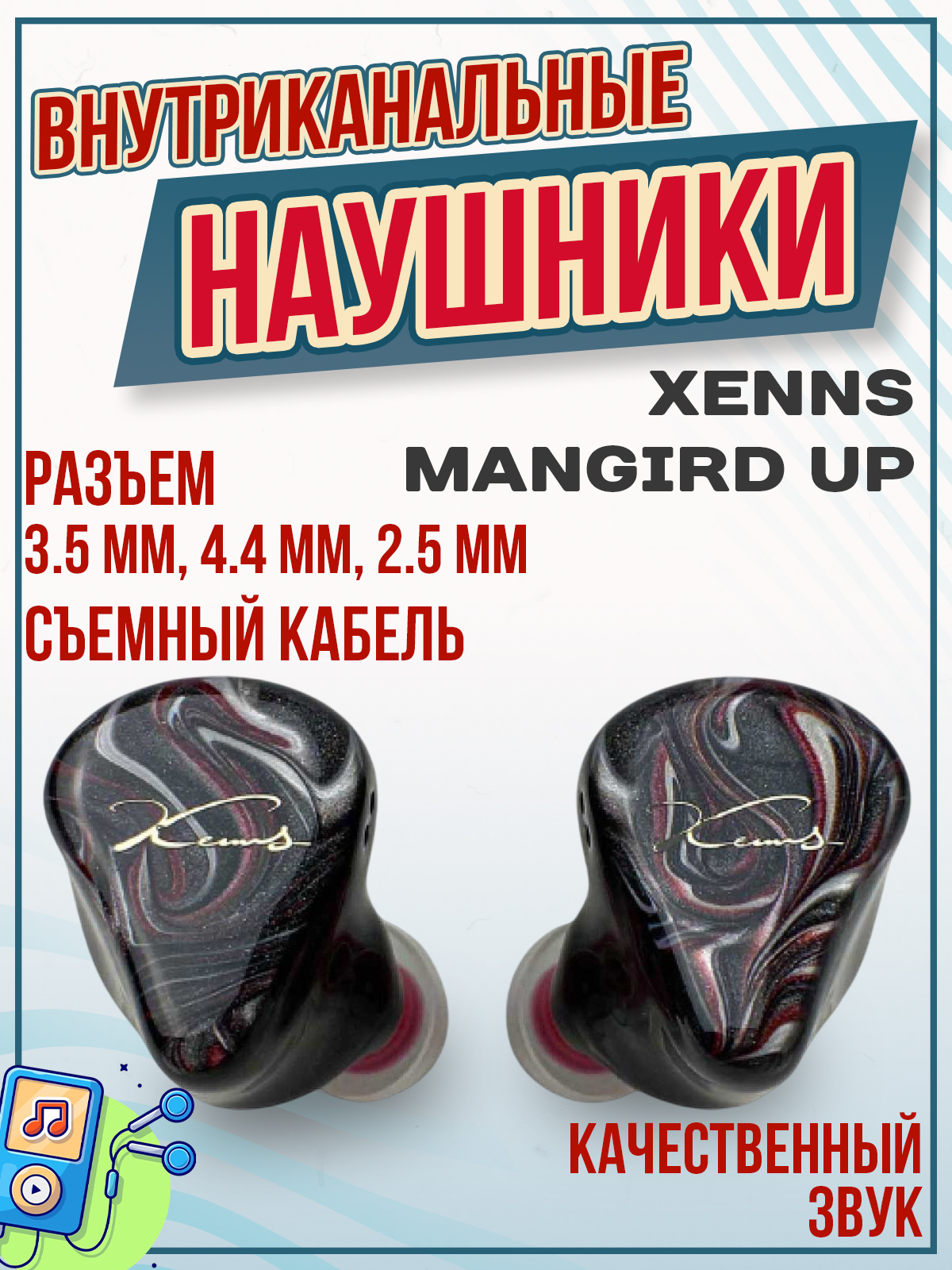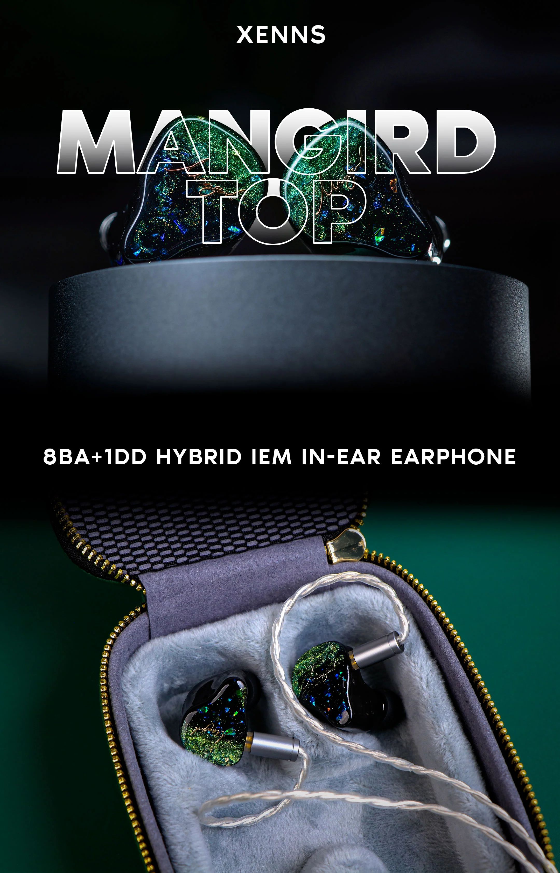 XENNS Mangird Up использует гибридную схему для комбинирования Sonion EST65DA01 сверхвысокочастотного драйвера, двух высокочастотных драйверов Sonion, двух среднечастотных драйверов серии Sonion 2300 и одного динамического драйвера с бериллиевым покрытием 10 мм для басов.