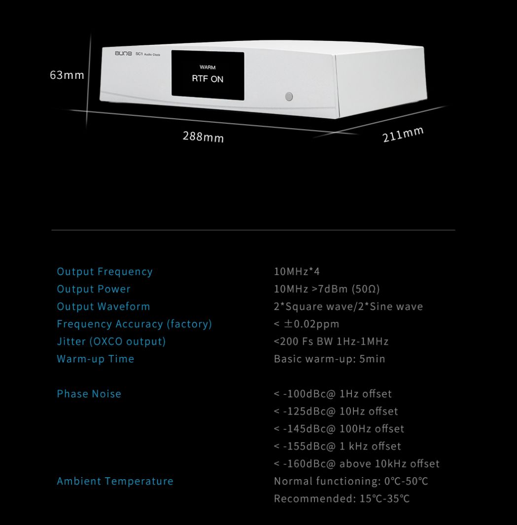 В Aune SC1 используется разработанный на заказ сверхнизкошумящий аудио генератор тактовых импульсов. OCXO специально оптимизирован для аудио, чтобы обеспечить высочайшую точность.