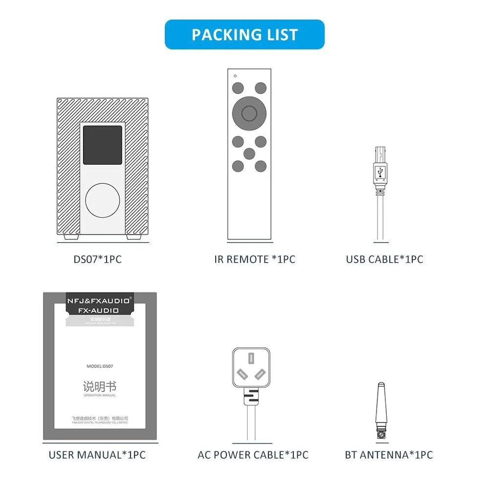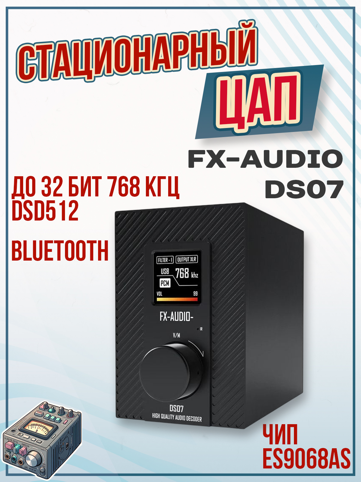 Компания FX-Audio представила балансный ЦАП DS07 - компактное, высокопроизводительное устройство с оригинальным внешним видом. ЦАП DS07 компании FX-Audio выполнен из полного набора аудиофильских компонентов: микросхемы ЦАП ES9068AS, USB-интерфейса XMOS XU-216, микросхема приемника Bluetooth 5.1 QCC5125 и не менее 5 ОУ OPA1612. Благодаря этим компонентам ЦАП FX-Audio обладает отличными измерительными характеристиками. Кроме того, он обладает широкими возможностями подключения, включая балансный стереовыход на разъемах XLR.