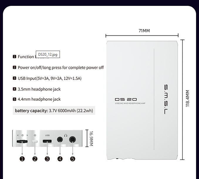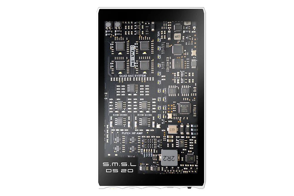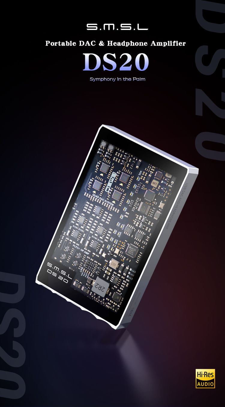 SMSL DS20 — новый портативный цифро-аналоговый преобразователь и усилитель для наушников, сочетающий современную схемотехнику с компактным корпусом. В устройстве используется сразу четыре ЦАП чипа CS43131 от Cirrus Logic, что обеспечивает точную обработку сигнала при поддержке PCM вплоть до 32 бит/768 кГц и DSD до 256. За быструю и стабильную работу USB-интерфейса отвечает новый чип XMOS XU-316 третьего поколения.