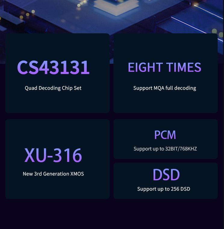 Модель полностью раскрывает MQA-файлы (8-кратное развёртывание), а также имеет переключаемые режимы USB 1.1/2.0 для подключения к ПК, смартфонам и игровым консолям. Конструкция корпуса предусматривает магнитное крепление — это удобно для установки на столе или совместного использования с другими устройствами.