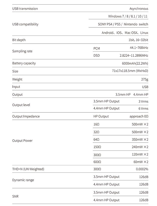 Продуманная архитектура включает сбалансированную схему усиления PLFC, специальную цепь генерации тактового сигнала с пониженным джиттером и малошумящий источник питания. Все ключевые компоненты — от резисторов до конденсаторов — подобраны с акцентом на работу в аудиотрактах. Встроенный аккумулятор обеспечивает длительную автономную работу. Устройство сертифицировано JAS (Hi-Res Audio).