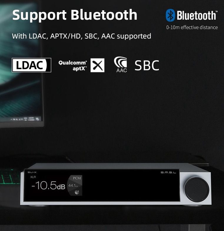 Чип Qualcomm последнего поколения позволяет ЦАПу SU-X поддерживать кодеки Bluetooth высокой четкости: SBC, AAC, aptX HD и LDAC. Это значительно повышает качество беспроводного приема сигнала с помощью ЦАП SU-X.