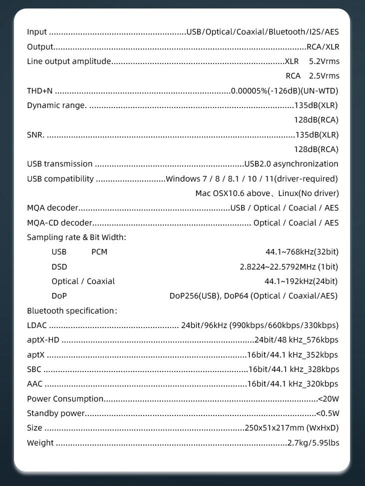 В ЦАП SMSL SU-X используются два флагманских чипа ES9039MSPro от ESS Technology. Два 32-битных 8-канальных чипа, специально разработанных для профессиональных и высококлассных аудиофильских приложений. В этих микросхемах ЦАП SABRE реализована архитектура HyperStream IV. USB-интерфейс XMOS XU316 третьего поколения дополняет чипсет, обеспечивая исключительную производительность. Таким образом, ЦАП SU-X способен декодировать PCM высокого разрешения 32 бит 768 кГц, DSD DOP64 и собственные DSD-кодеки вплоть до DSD512.