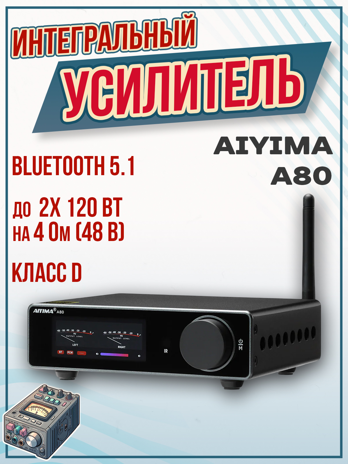 - Усилитель Aiyima A80, Bluetooth, интегральный