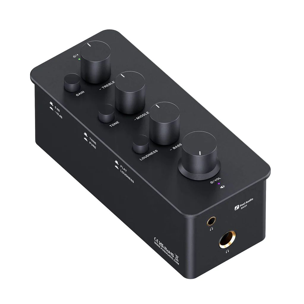 Fosi Audio SK01 - новый усилитель для наушников с аккумулятором. Выходная мощность RMS составляет до 2400 мВт@32Ω. Он имеет регулятор громкости и темброблок.