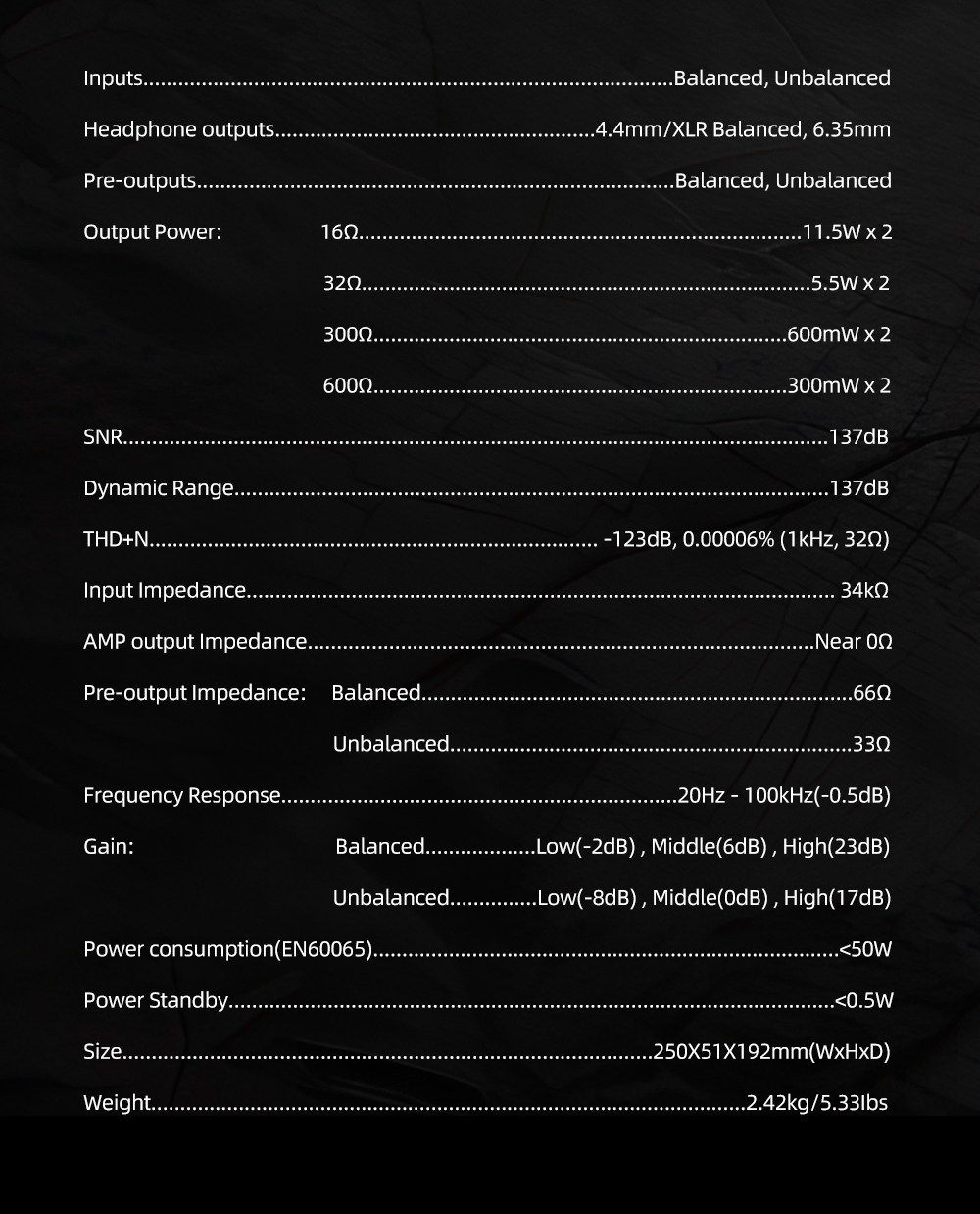 В основе SH-X лежит мощность. Обладая впечатляющей мощностью 11,5 Вт при нагрузке 16 Ом и 5,5 Вт при нагрузке 32 Ом, этот усилитель способен справиться с самыми мощными полноразмерными наушниками.