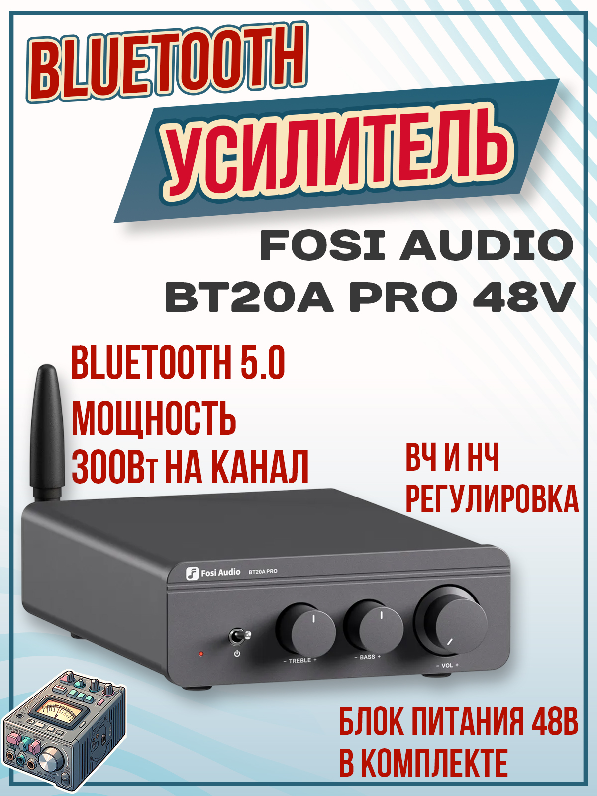 Fosi Audio BT20A PRO - это компактный и мощный усилитель класса D, предлагаемый по очень разумной цене. Что касается подключений, то BT20A PRO прост и эффективен, имеет стерео вход RCA или Bluetooth 5.0, выход с плакированными акустическими клеммами, а также предварительный выход 3,5 мм джек. На передней панели BT20A PRO имеется регулятор тембра, позволяющий настроить уровень низких и высоких частот, чтобы адаптировать воспроизведение устройства к вашей аудиосистеме и вашим предпочтениям. Регулировка тембров работает только на выходы для пассивных АС и не работает для предварительного выхода. Кроме того, теперь доступна функция удаления истории сопряжения bluetooth путем длительного удержания кнопки громкости. В усилительном каскаде используется высококлассная микросхема усиления TI TPA3255, способная развивать мощность 225 Вт под нагрузкой 4Ω на канал. При этом обеспечивается четкое и детальное воспроизведение звука.