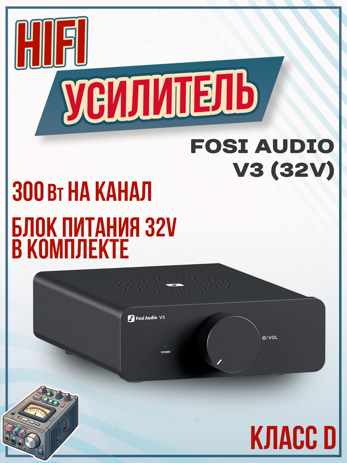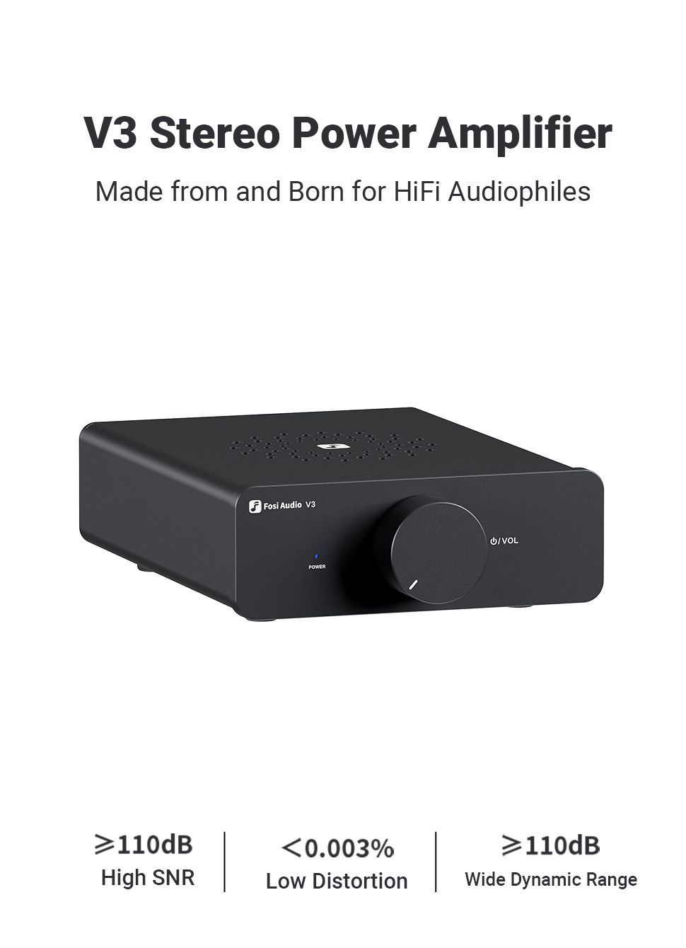 Fosi Audio V3 — это мини-усилитель мощности HiFi класса D, который обеспечивает максимальную выходную мощность 600 Вт на два канала, обеспечивая мощное и высококачественное звучание.