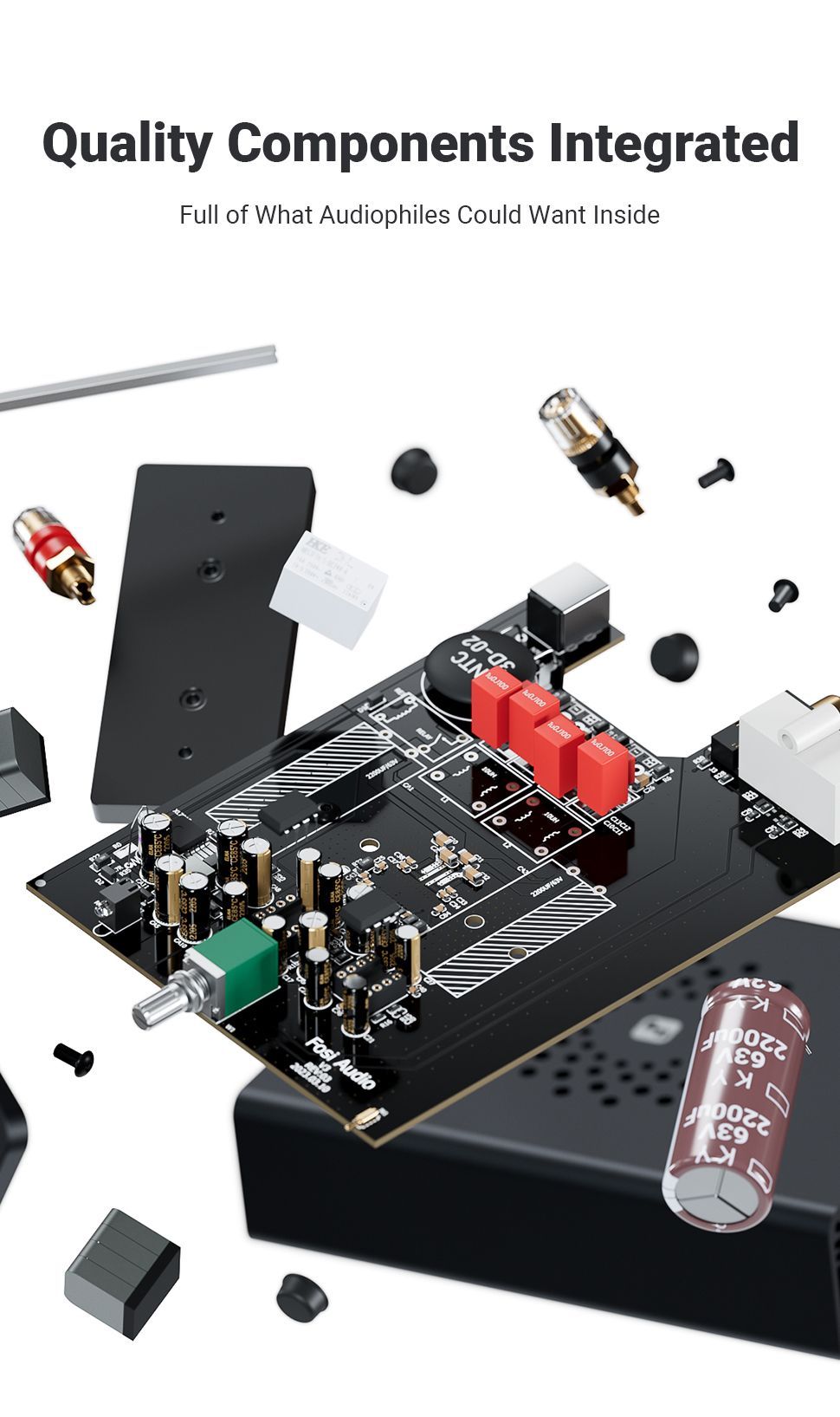 Высококачественное качество звука: благодаря микросхеме усилителя мощности TPA3255 класса D от Texas Instruments усилитель V3 обеспечивает исключительную энергоэффективность. С использованием материалов аудиофильского уровня, таких как профессиональные аудиоиндукторы Sumida, фильтрующие конденсаторы высокой емкости NCC, немецкие выходные конденсаторы WIMA, японские конденсаторы ELNA и т. д. Эти высококачественные компоненты позволяют V3 сохранять очень высокую стабильность даже в условиях работы с высокой мощностью.