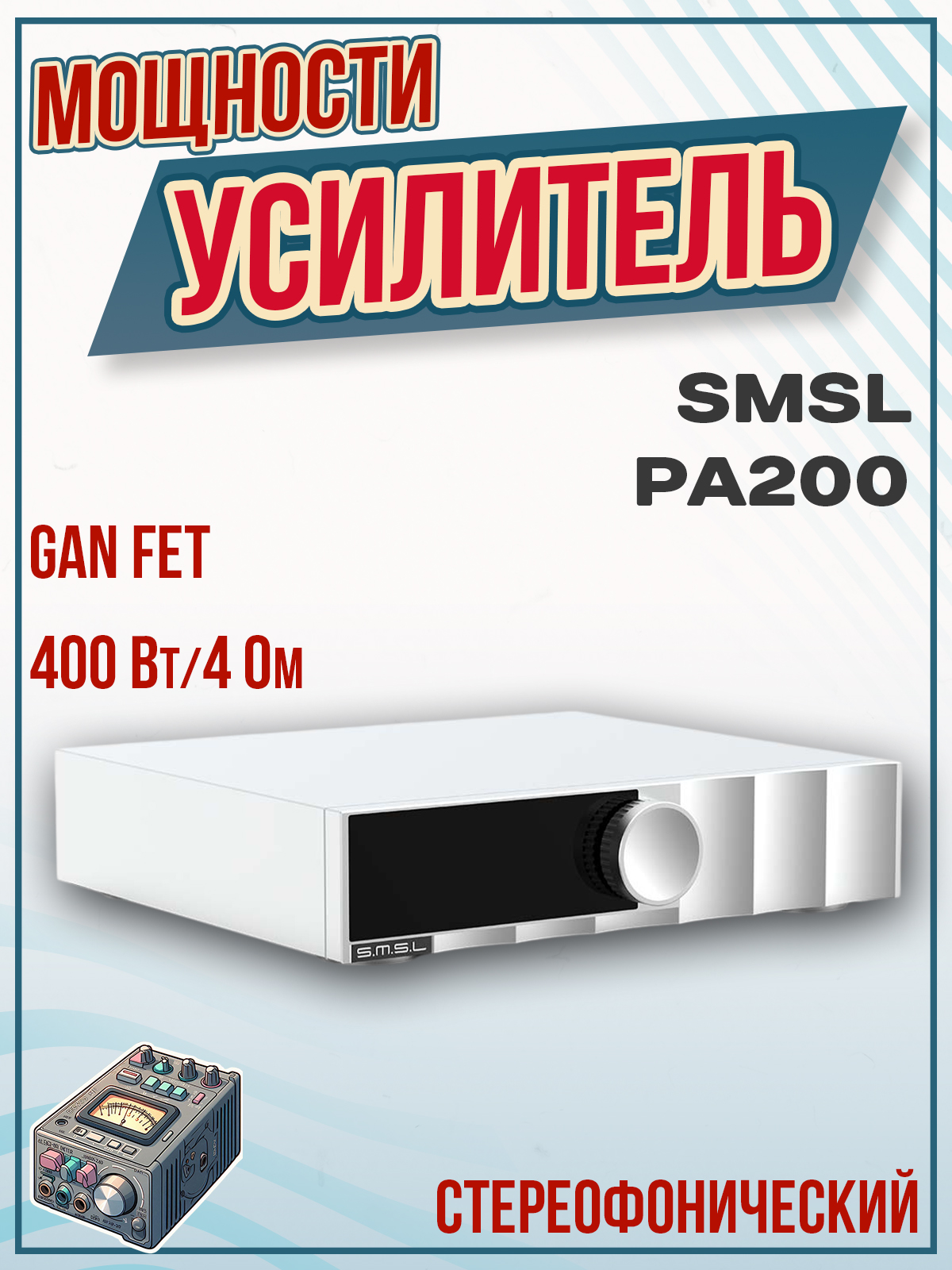 - Усилитель мощности SMSL PA200, GaN FET, стереофонический, RCA, XLR